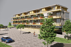 Neubau gestapelte Reihenhäuser mit Stadthaus